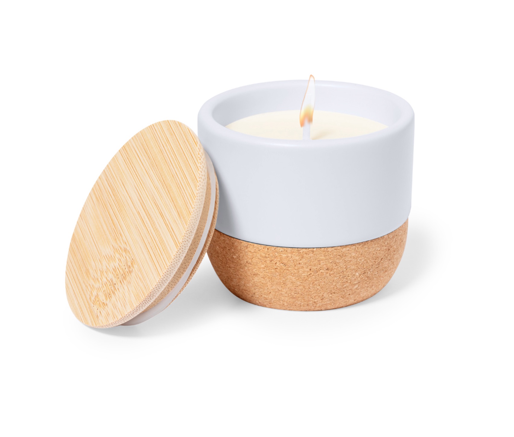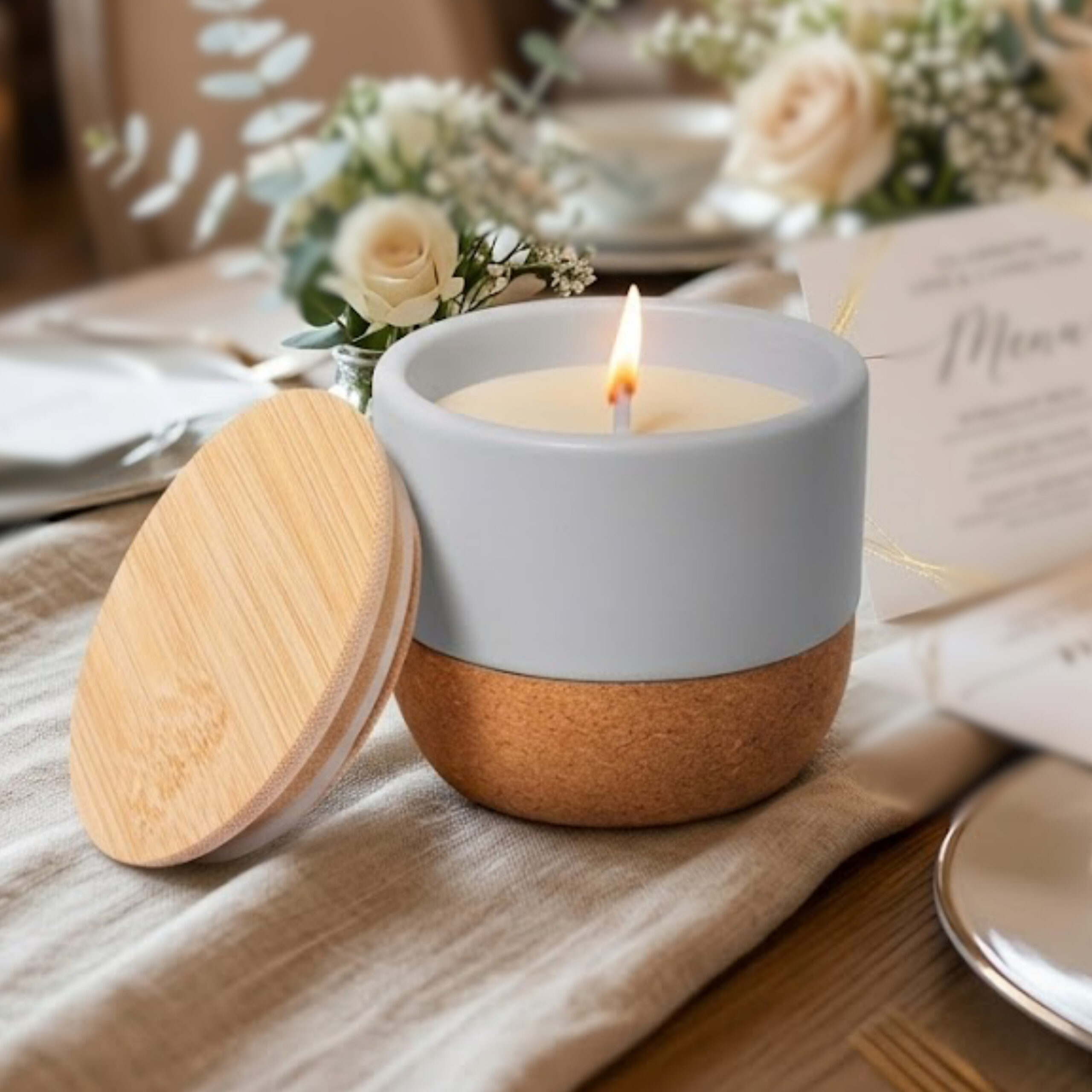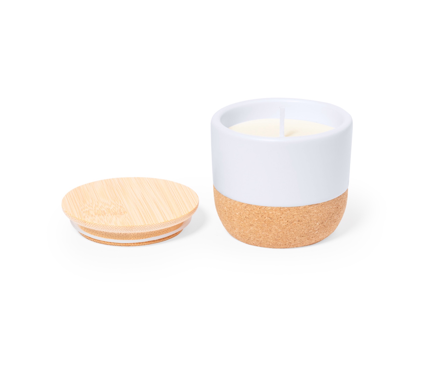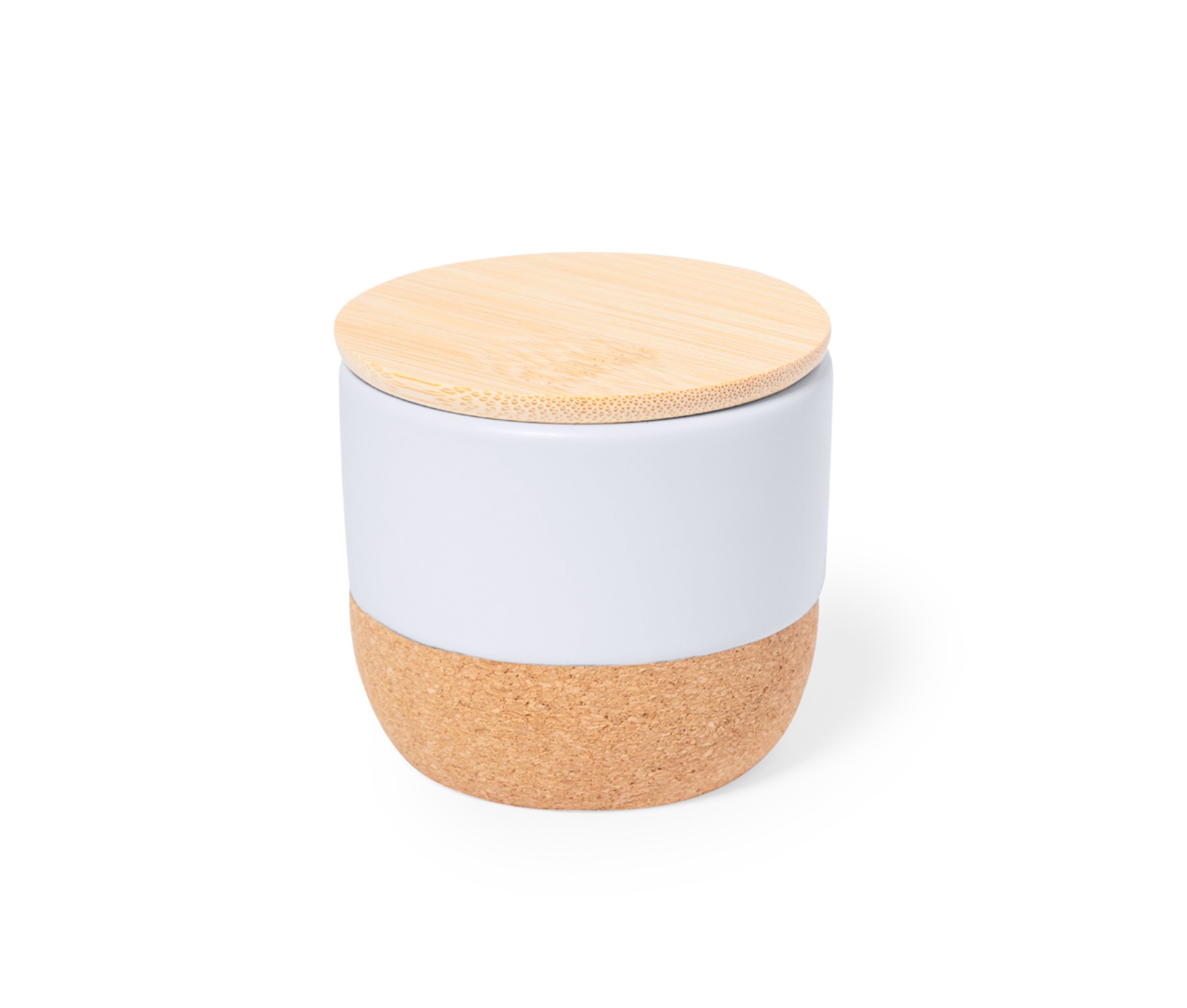 Matériaux Nobles : Pot en céramique blanche élégante reposant sur une base en liège naturel antidérapante.