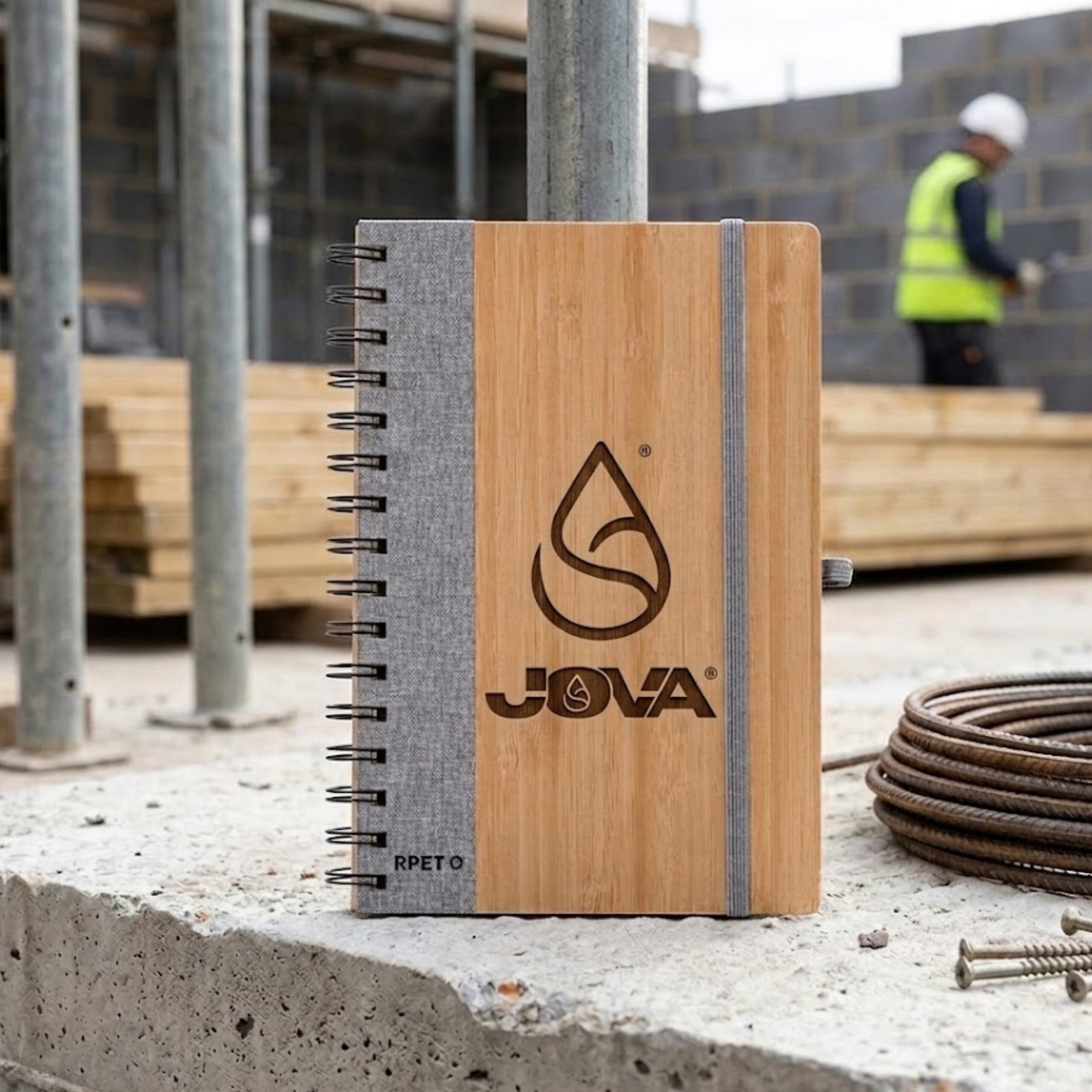 Finitions RPET : Équipé d’une bande latérale et d’un support pour stylo assortis en polyester recyclé.