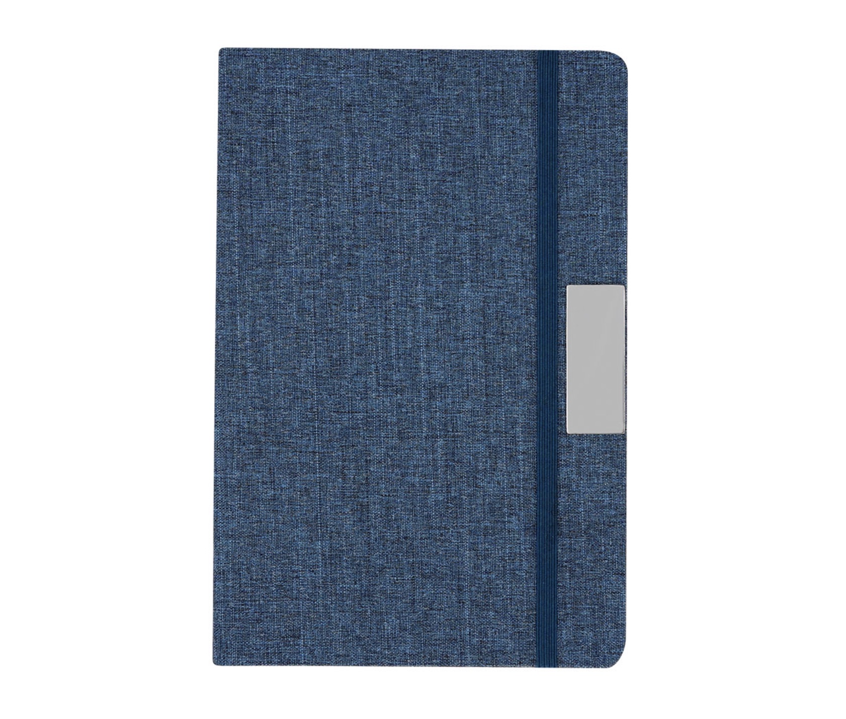 Bloc-notes RPET : Couverture rigide en plastique recyclé contenant 80 pages lignées avec marque-page.