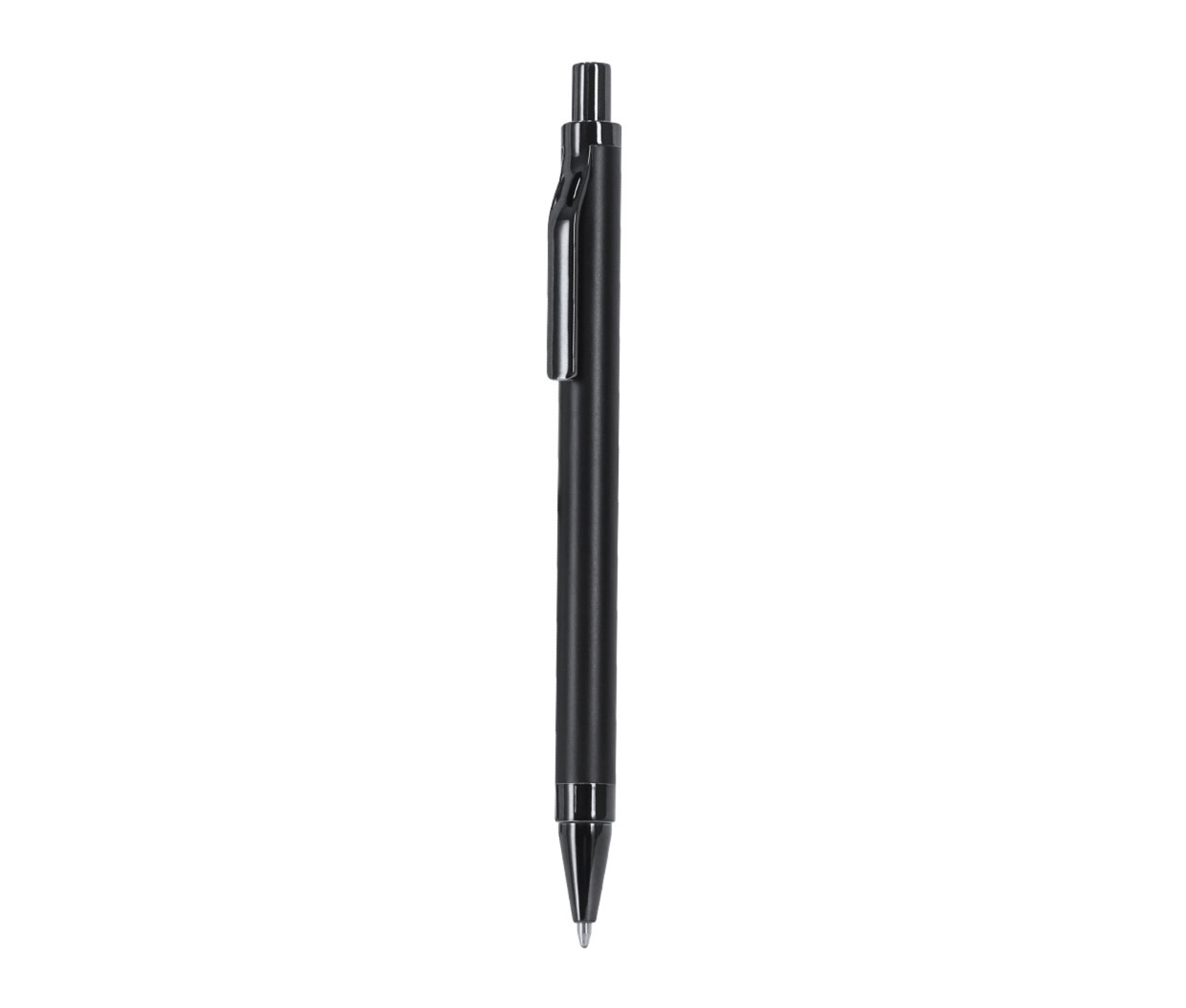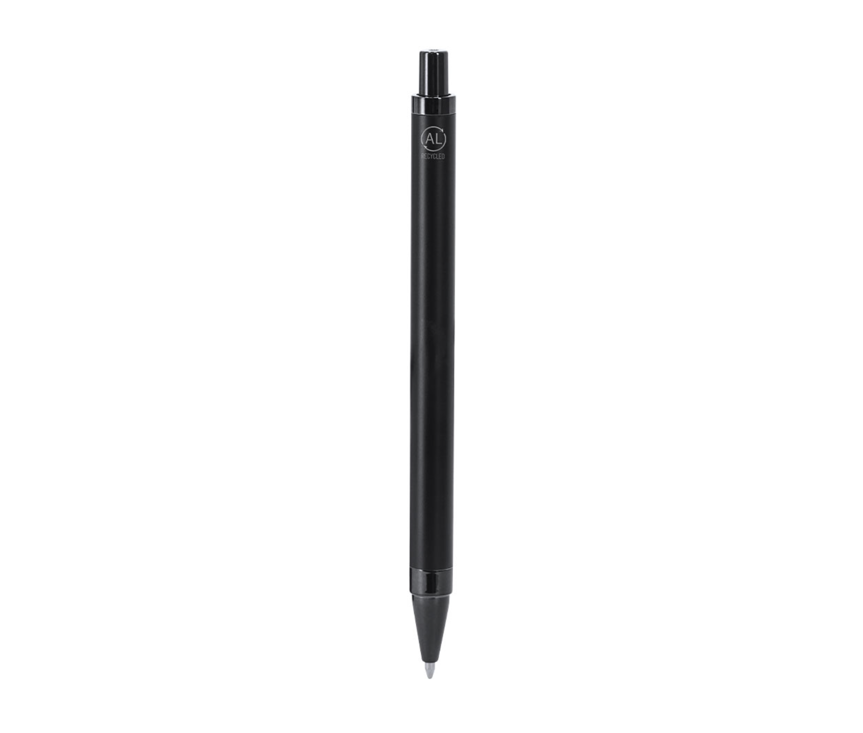 Stylo en Aluminium Recyclé : Finition noire mate sophistiquée avec un mécanisme à bouton-poussoir.
