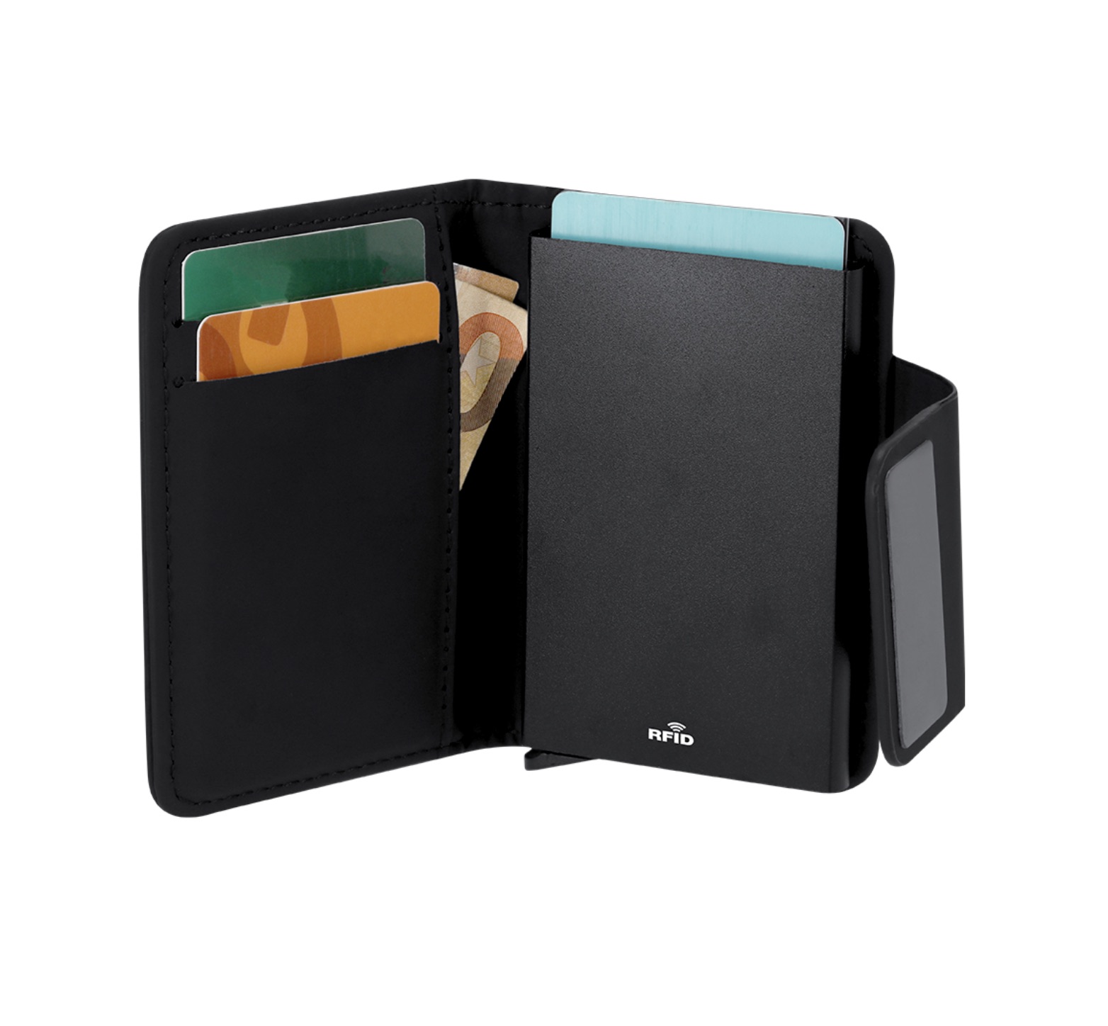 Capacité de 10 Cartes : Espace de rangement optimisé comprenant 4 compartiments et un mécanisme coulissant ingénieux pour un accès rapide.