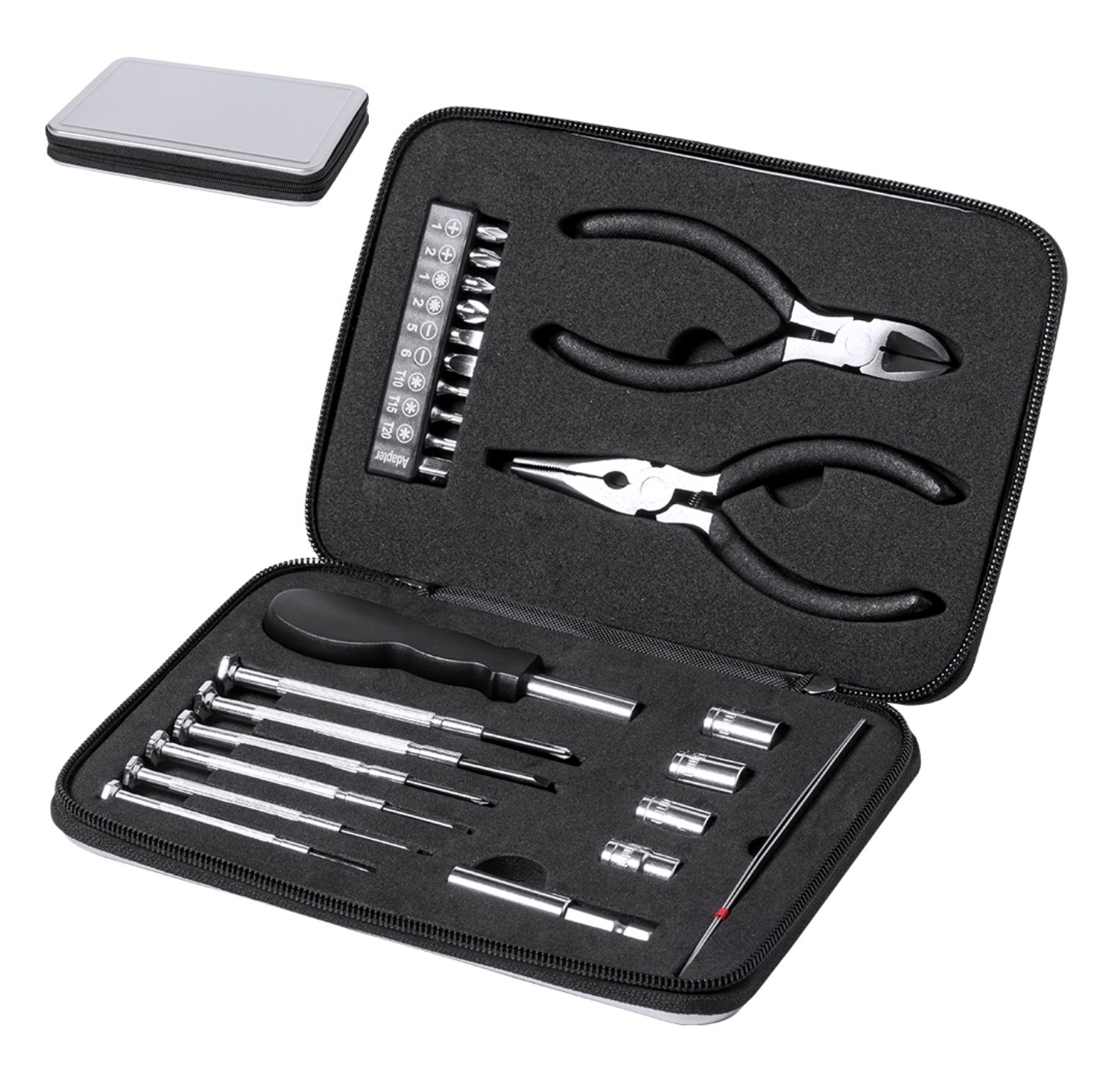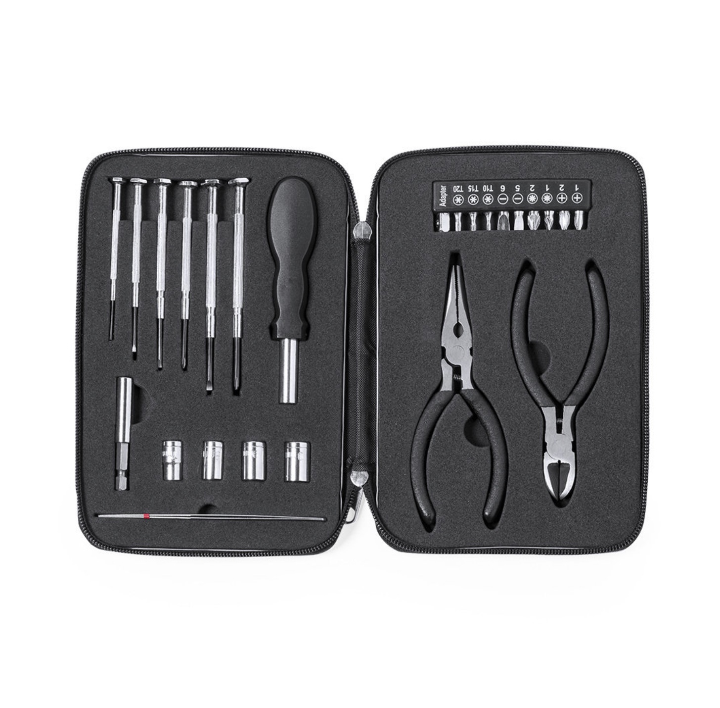 25 Accessoires Inclus : Kit complet comprenant des tournevis de précision, une poignée multifonction et des pinces.