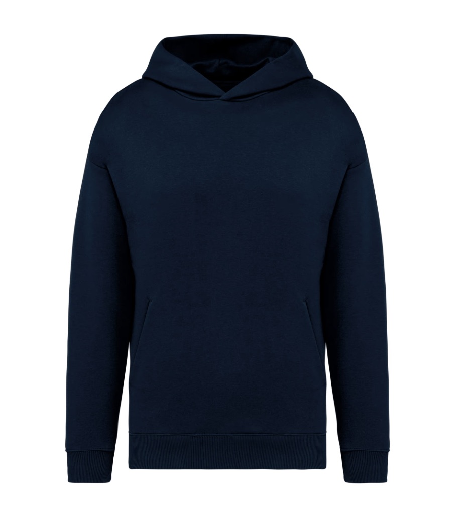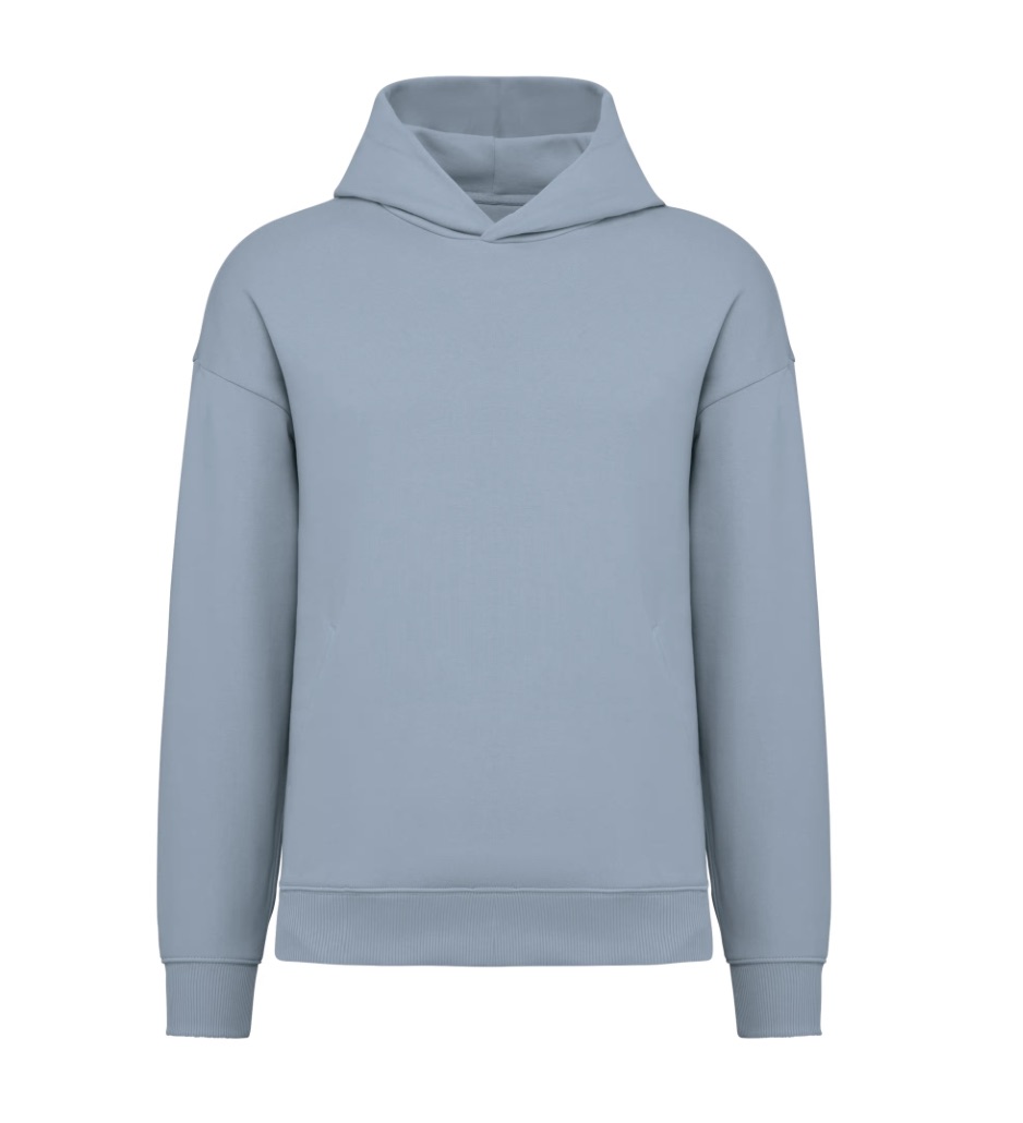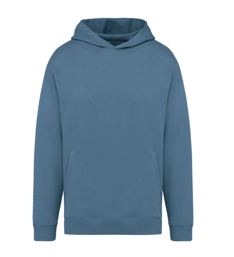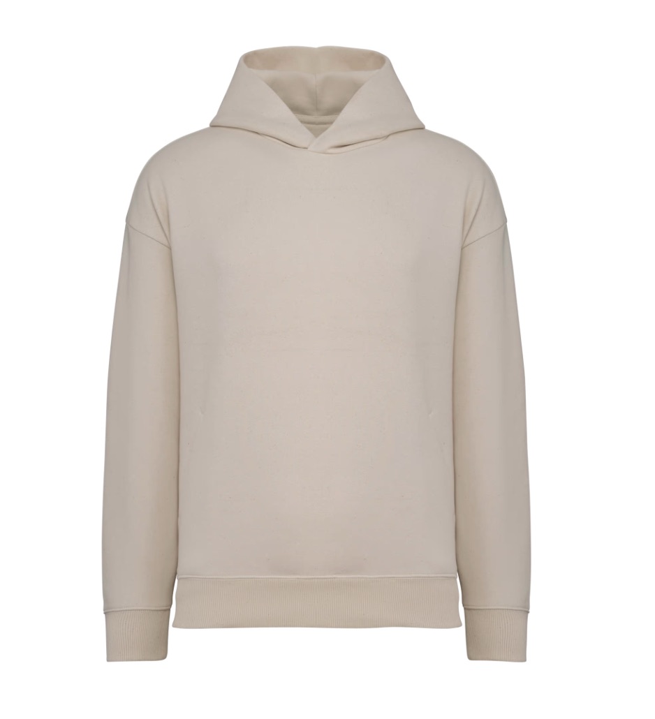 Finitions : Lavé aux enzymes, ½ lune au dos, capuche doublée en matière principale, capuche sans cordon, poche latérale minimaliste